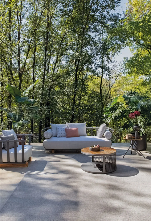 Il design del divano Portofino è caratterizzato dalle sue curve eleganti e linee pulite, emanando sofisticatezza e fascino. I dettagli attentamente considerati, come i dettagli in teak e i cuscini morbidi, migliorano il suo appeal estetico. L'aspetto generale è invitante e lussuoso, rendendolo un centro ideale per qualsiasi giardino o patio. L'equilibrio tra materiali e forme garantisce che questo divano non solo svolga una funzione pratica ma elevi anche l'interesse visivo degli spazi esterni.