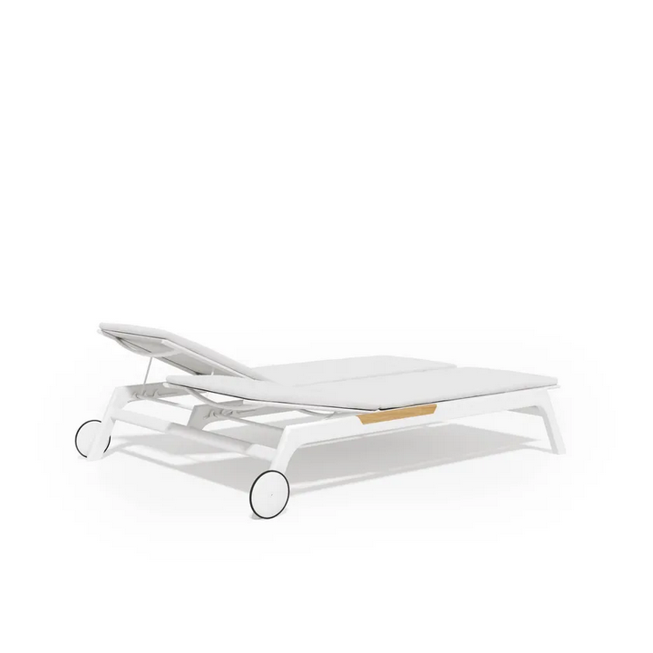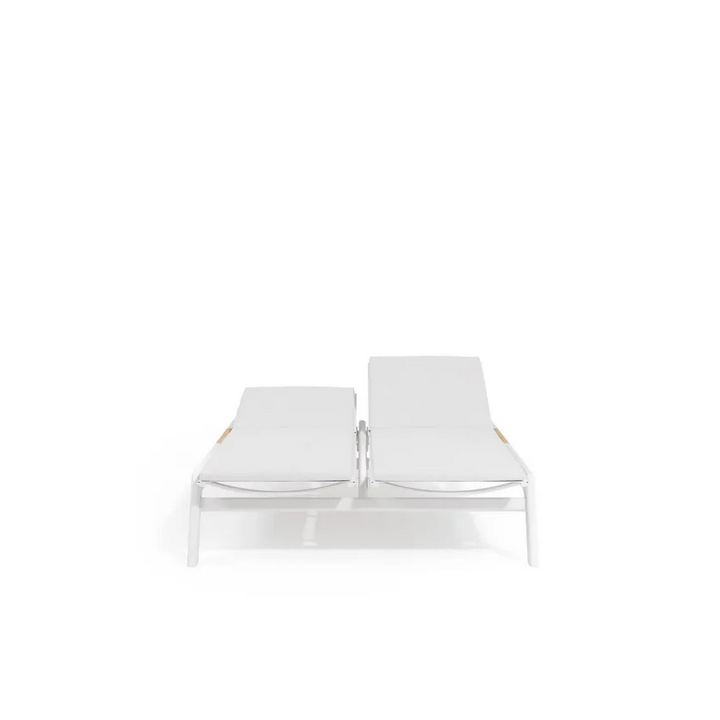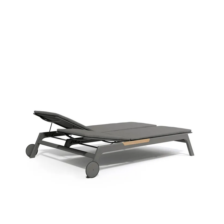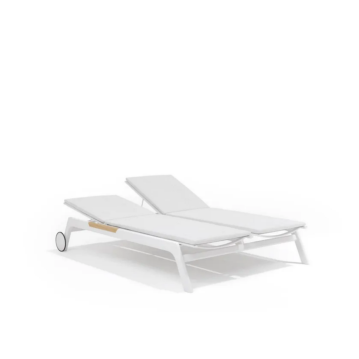 La composizione consiste in un singolo lettino sole doppio, progettato per accogliere comodamente due persone. Le sue linee eleganti e gli elementi moderni lo rendono un pezzo di spicco in qualsiasi ambiente esterno, sia che venga utilizzato a bordo piscina, su un patio o in un giardino.