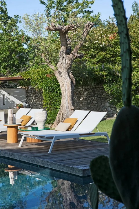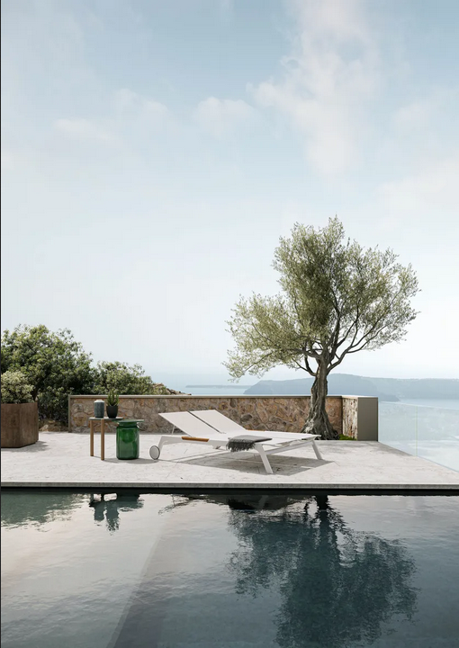 Costruito in alluminio di alta qualità, textilene e teak, questo lettino solare incarna durabilità e stile. Il telaio in alluminio è leggero ma robusto, mentre il tessuto in textilene offre una superficie traspirante che resiste allo sbiadimento e allo strappo. Gli inserti in teak aggiungono un tocco di eleganza naturale e sono noti per le loro proprietà resistenti alle intemperie. La finitura è pulita e raffinata, garantendo una superficie liscia che completa il design complessivo. Tutti i materiali utilizzati sono ecologici e conformi agli standard internazionali di sostenibilità.