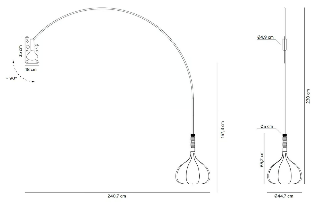La lampada BUL-BO XL è progettata con dimensioni ponderate, adatte per vari spazi. La sua forma ad arco consente una collocazione versatile in stanze di diverse dimensioni, assicurando che si integri perfettamente in ambienti sia compatti che spaziosi. Le proporzioni della lampada sono attentamente considerate per massimizzare il suo impatto come elemento decorativo, fornendo al contempo un'illuminazione efficace, rendendola una scelta ideale per spazi abitativi moderni.