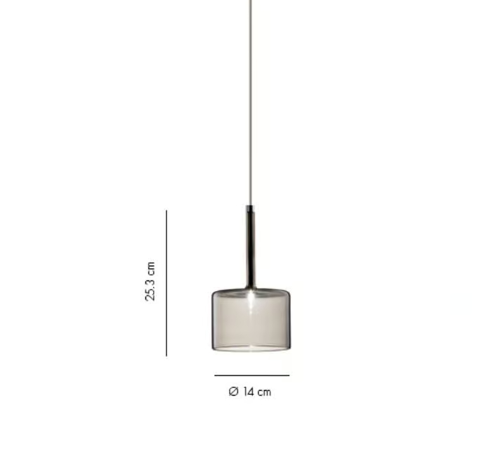 La composizione della lampada Spillray Plus include una singola lampada a sospensione con un elemento in vetro rimovibile e un fissaggio in metallo. Questo design semplificato facilita l'installazione e la manutenzione, permettendo ai proprietari di godere della bellezza della lampada senza il fastidio di installazioni complicate.