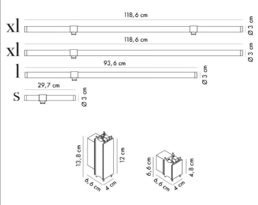 La lampada da parete in vetro borosilicato a LED Paralela è progettata per adattarsi perfettamente a vari interni, con dimensioni pensate per la versatilità. Sebbene non siano fornite misure specifiche, la lampada è progettata per essere compatta e discreta, rendendola adatta a diverse posizioni a muro. La natura modulare del design consente diverse configurazioni, assicurando che tu possa creare l'arrangiamento di illuminazione perfetto per le tue esigenze.