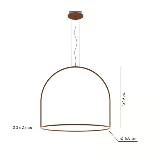 La lampada U-LIGHT è offerta come un singolo apparecchio a sospensione, progettato per essere un pezzo autonomo o parte di uno schema di illuminazione più ampio. Il suo generoso diametro di 180 cm la rende un pezzo di dichiarazione significativo che trasforma qualsiasi stanza in uno spazio accogliente.