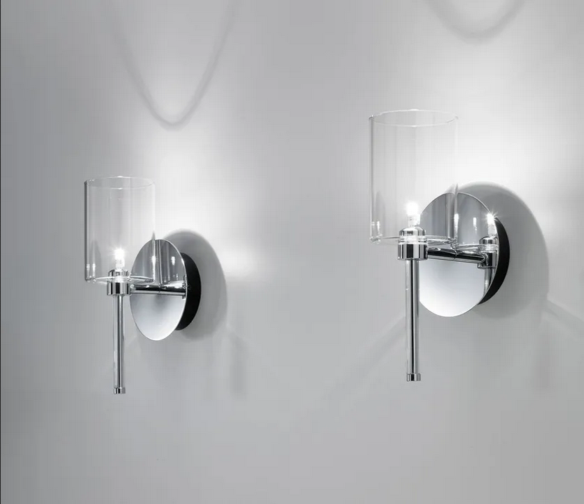 Il design dell'applique Spillray si concentra su semplicità ed eleganza. L'interazione tra vetro e cromato crea un equilibrio armonioso, mentre le forme e le linee accuratamente lavorate assicurano che ogni dettaglio sia visivamente attraente. Gli elementi decorativi della lampada sono discreti, ma impattanti, rendendola una scelta perfetta per vari temi di design.