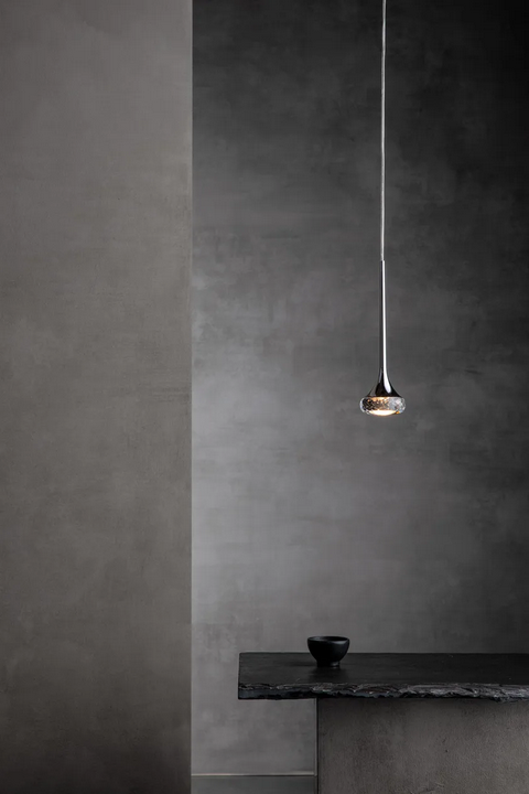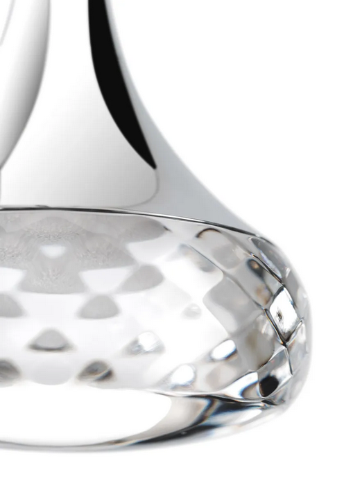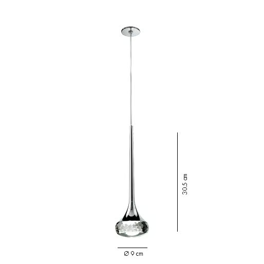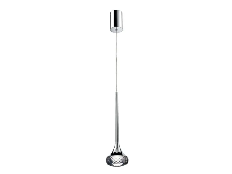 La lampada è realizzata in alluminio e cristallo di alta qualità, garantendo durata pur mantenendo un aspetto elegante. La finitura cromata non solo esalta la sua estetica moderna, ma offre anche un aspetto elegante e lucido. I materiali utilizzati sono ecologici e ottenuti secondo standard di sostenibilità internazionali, evidenziando l'impegno del produttore per una produzione rispettosa dell'ambiente.