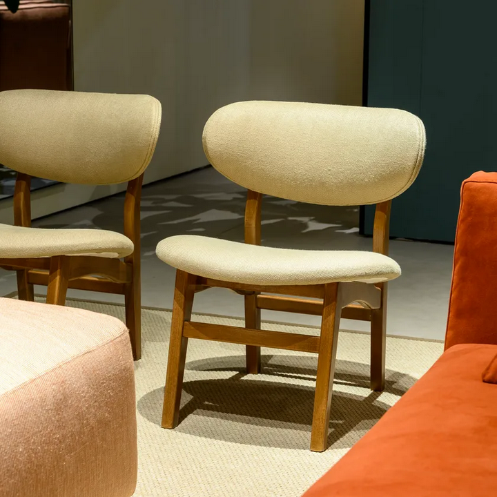 Con le sue curve raffinate e il rivestimento elegante, la sedia LITTLE INGA esemplifica un design ben pensato. L'attenzione ai dettagli è evidente in ogni aspetto, dalla finitura liscia del legno al tessuto accuratamente cucito. L'aspetto complessivo della sedia è sia sofisticato che invitante, rendendola una scelta ideale per sale da pranzo, aree soggiorno o anche come pezzo d'accento autonomo.