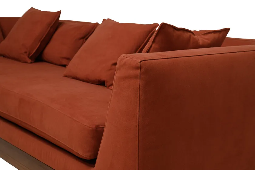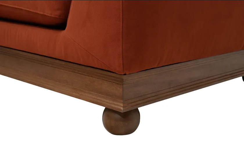 Il Divano in Cotone PARIS si distingue per il suo design unico, i materiali di alta qualità e l'eccezionale artigianato. La sua combinazione di elementi moderni e classici lo rende versatile per vari stili di interni. L'accogliente rivestimento terracotta e la finitura elegante in noce migliorano il suo fascino, mentre l'ampia seduta offre comfort per più utenti. Questo divano è perfetto per coloro che valutano la bellezza estetica e il design funzionale nei loro arredi domestici.