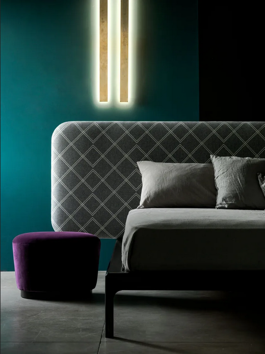 Il letto matrimoniale ATLAS è caratterizzato dalla sua testata sorprendente e silhouette raffinata. Il motivo geometrico sul tessuto aggiunge un tocco contemporaneo, mentre le gambe in legno lisce offrono stabilità e un tocco di calore. L'attenzione ai dettagli è evidente in ogni aspetto del design, dalla cucitura dell'imbottitura alla perfetta integrazione dei materiali, creando un aspetto complessivo raffinato.