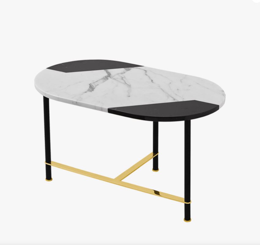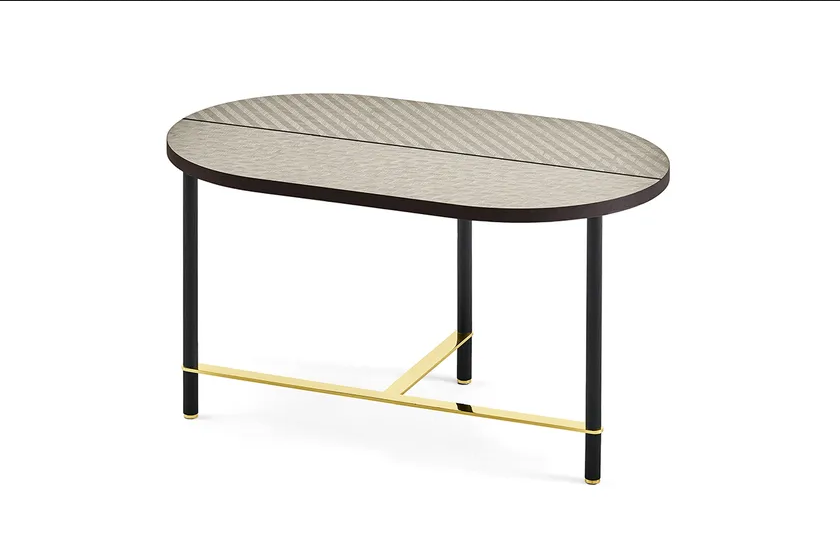 Il design del tavolino COOKIES enfatizza linee pulite e una silhouette ovale che emana sofisticatezza. L'attenzione ai dettagli è evidente nelle intricate inlay e nella scelta dei materiali, che insieme creano un aspetto coeso e accogliente. La struttura del tavolino, realizzata in alluminio anodizzato nero spazzolato a mano e ottone luminoso, aggiunge un tocco industriale che complementa il calore delle superfici in legno e marmo, garantendo che attiri ammirazione da ogni angolo.