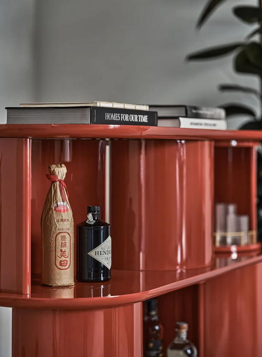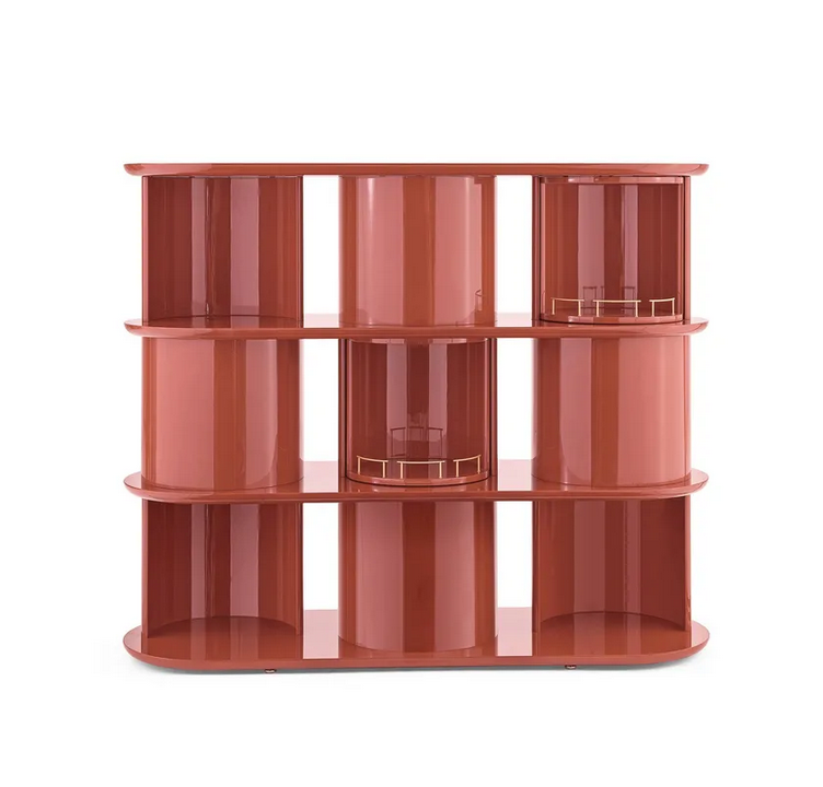 La libreria presenta un design a mezza cilindro sorprendente, che non solo funge da punto focale visivo, ma migliora anche la sua funzionalità. Le superfici lisce e lucide e i dettagli in ottone elegante creano un aspetto sofisticato che completa vari stili di interni. È stata prestata particolare attenzione ai dettagli, assicurando che ogni aspetto del design contribuisca al suo fascino estetico complessivo.