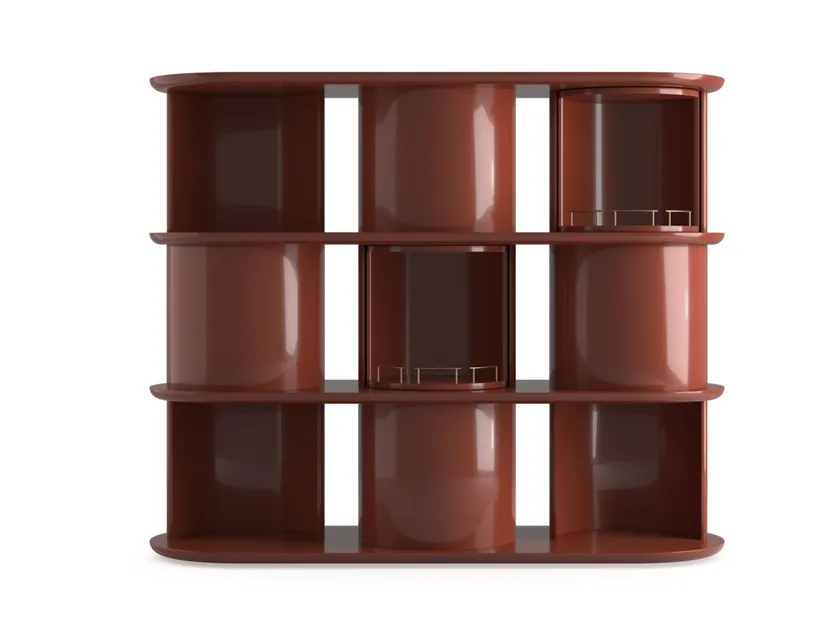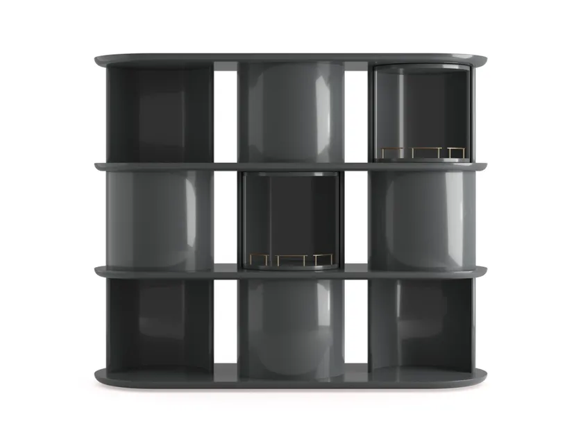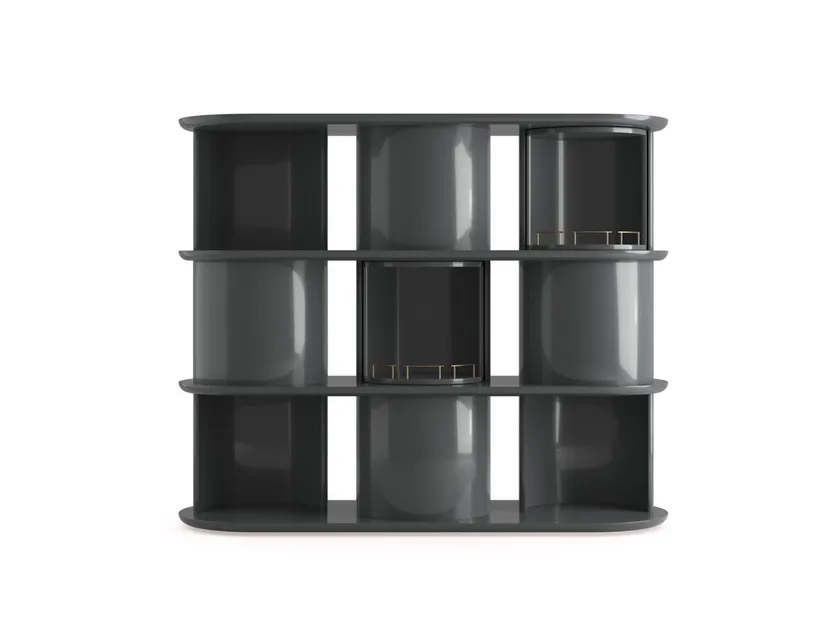 La libreria aperta in legno HIDE&SEEK di GALLOTTI&RADICE è un esempio straordinario di design moderno che fonde armoniosamente funzionalità e stile. La sua struttura unica presenta un design a mezza cilindro, che consente diverse configurazioni e un facile accesso agli oggetti riposti. Questa libreria non solo funge da pezzo d'arredo estetico, ma offre anche ampio spazio di archiviazione, rendendola ideale per soggiorni contemporanei, uffici o biblioteche. La combinazione di legno lucido laccato e dettagli in ottone satinato aggiunge un tocco elegante, assicurando che si distingua in qualsiasi ambiente.
