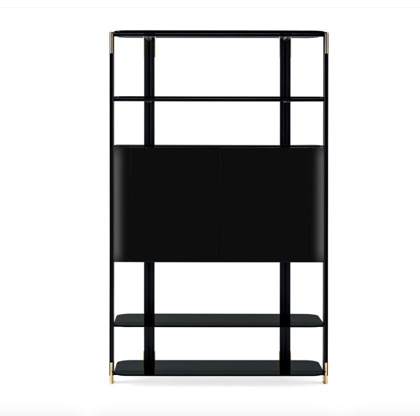 La Libreria in Alluminio e Legno SYIL di GALLİOTTI&RADICE è un perfetto connubio di estetica moderna e design funzionale. Questo sistema di scaffalature vanta supporti in alluminio anodizzato nero e splendidi dettagli in ottone, rendendolo un'aggiunta sorprendente a qualsiasi spazio abitativo. Con ripiani in vetro temperato, sia eleganti che resistenti, la libreria è progettata per mostrare i tuoi libri e oggetti decorativi amati, offrendo al contempo ampio spazio di archiviazione. L'inclusione di una porta in legno laccato e unità cassetti personalizzabili in finiture esclusive offre sia praticità che eleganza, soddisfacendo diversi stili d'interni.