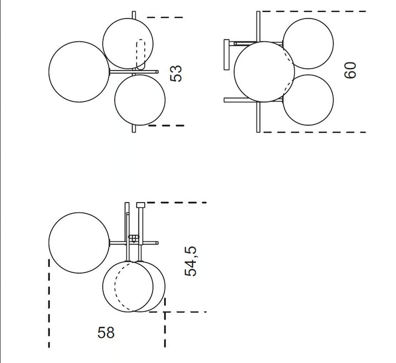 La lampada Bolle Aria è progettata per adattarsi a supporti standard per pareti e soffitti, garantendo compatibilità con vari spazi di installazione. Le sue dimensioni sono state attentamente considerate per fornire una presenza d'impatto senza sopraffare lo spazio, rendendola una scelta ideale sia per applicazioni residenziali che commerciali.