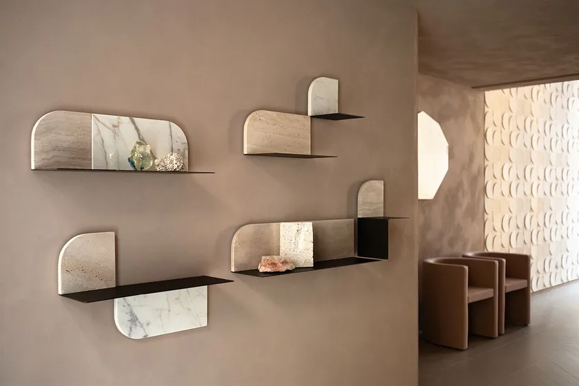 La ROUNDCUT Marble Wall Shelf è un pezzo autonomo progettato per funzionare senza problemi in vari contesti. Sebbene possa essere utilizzata in modo indipendente, è anche parte di un sistema modulare più ampio, consentendo l'integrazione con ulteriori unità di scaffalatura per creare una soluzione di stoccaggio coesa su misura per le esigenze individuali.