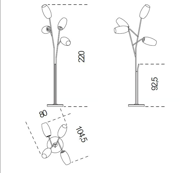 La lampada da terra Diantha è progettata per adattarsi comodamente in vari spazi. Il suo profilo snello la rende adatta sia per aree compatte che più grandi. Anche se non sono fornite dimensioni specifiche, il suo design è ottimizzato per la vita moderna, garantendo che possa adattarsi a una gamma di layout interni.