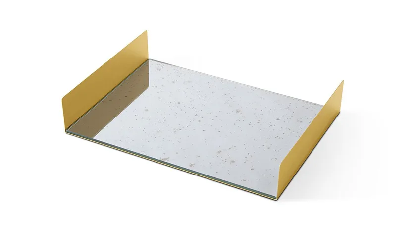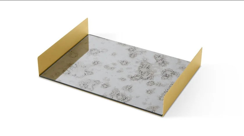 Il vassoio incorpora principi di design moderni con un focus sulla funzionalità e sull'appeal estetico. La sua superficie riflettente non solo migliora la bellezza degli oggetti esposti, ma crea anche un senso di profondità e dimensione. L'uso di materiali di alta qualità garantisce che il vassoio rimanga un pezzo senza tempo, capace di adattarsi ai cambiamenti delle tendenze pur mantenendo il suo fascino.