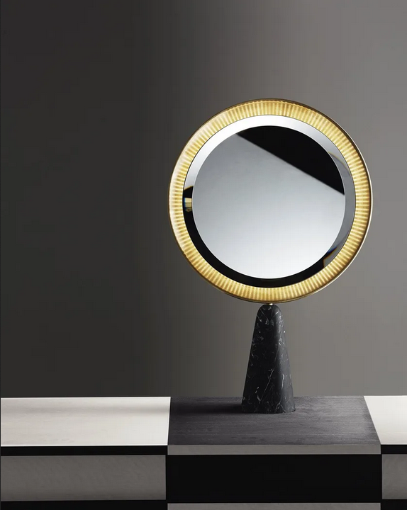 Lo Specchio da Toeletta LED Selene si distingue per il suo design unico, materiali di alta qualità e caratteristiche funzionali. La sua elegante combinazione di marmo e ottone satinato non solo migliora l'appeal visivo, ma offre anche durabilità e stabilità. L'illuminazione LED a basso consumo energetico garantisce che tu possa godere di un'illuminazione brillante e lusinghiera, rendendolo un must-have per chi valorizza sia lo stile che la praticità.