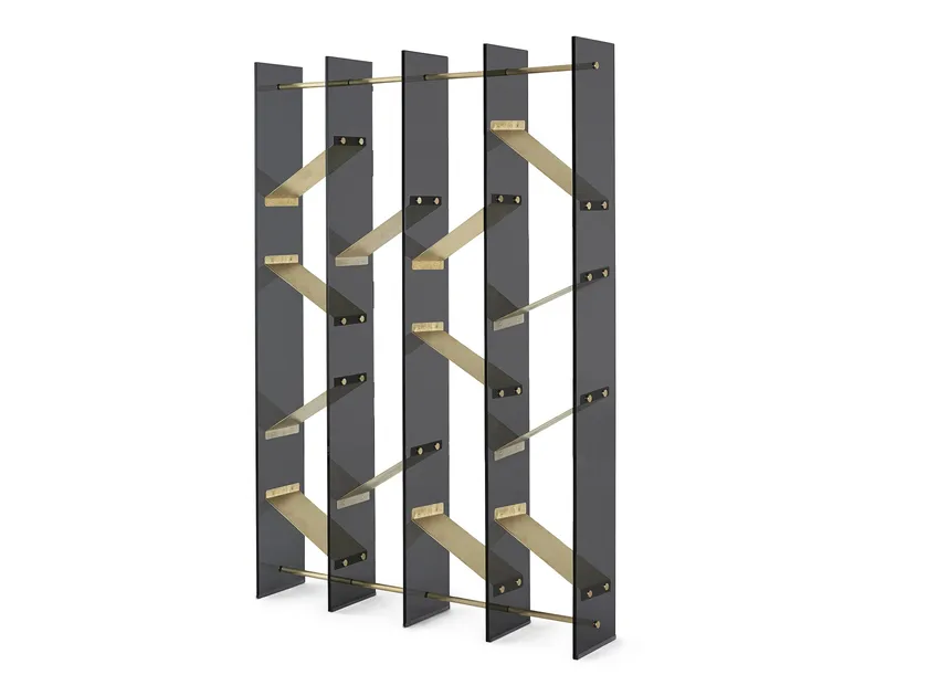 L'attenzione ai dettagli è evidente nel design della libreria ISOLA, con le sue linee e forme attentamente progettate. I perni in ottone lucido e i ripiani in ottone satinato sono non solo funzionali ma anche decorativi, fornendo un ulteriore livello di interesse. La trasparenza del vetro consente agli oggetti esposti sui ripiani di occupare il palcoscenico, mentre il design complessivo rimane discreto ed elegante.