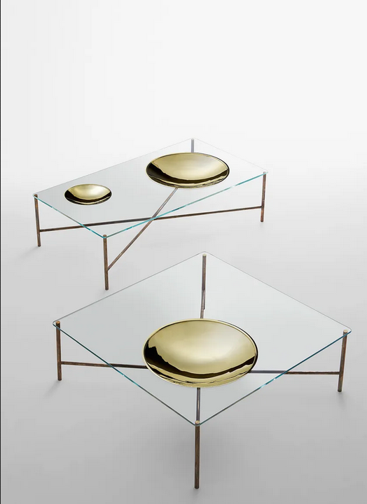Tavolino da caffè quadrato in cristallo Golden Moon Gallotti&Radice