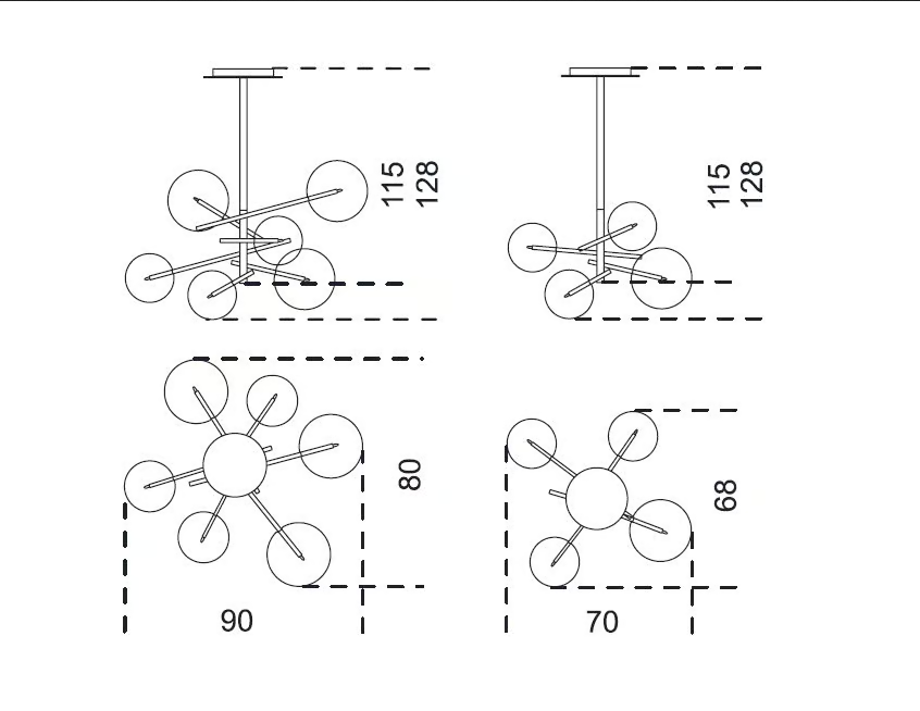 La lampada a sospensione Bolle è disponibile in due configurazioni: Bolle 4 con quattro sfere e Bolle 6 con sei sfere. Ogni versione mostra la stessa eccezionale lavorazione e design, consentendo ai clienti di scegliere l'opzione che meglio si adatta al loro spazio e stile.