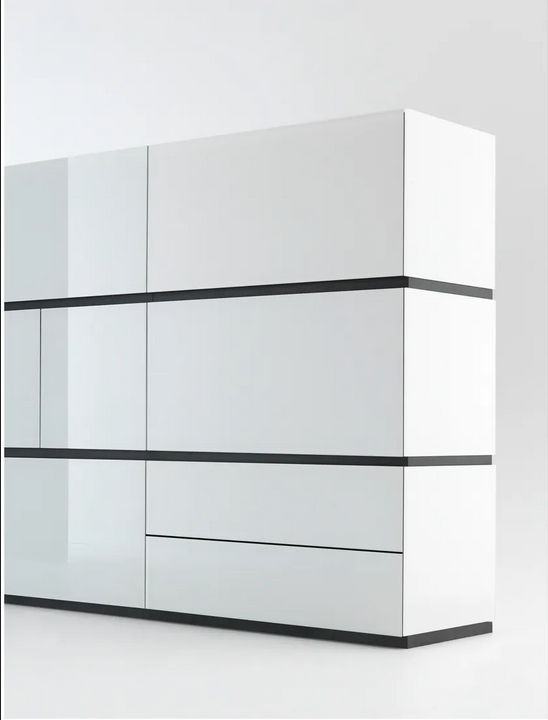 L'unità di stoccaggio AIR UP mostra dettagli di design squisiti, dalle linee eleganti alle finiture raffinate del vetro verniciato e del legno. Ogni componente è realizzato con precisione, mettendo in evidenza la qualità della lavorazione. L'appeal estetico dell'unità è accentuato dal suo approccio minimalista, permettendole di fungere sia da soluzione di stoccaggio funzionale che da elemento visivo sorprendente nello spazio di lavoro.