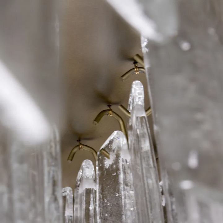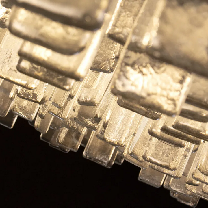 Questa squisita lampada da soffitto è realizzata in vetro e metallo di alta qualità, garantendo durata e sofisticatezza. La finitura in oro spazzolato aggiunge un tocco di lusso, mentre le strisce di vetro di cristallo sono meticolosamente lucidate per riflettere la luce in modo splendido. I materiali utilizzati sono ecologici e soddisfano gli standard internazionali di sostenibilità, rendendo questa lampada una scelta responsabile per la tua casa.