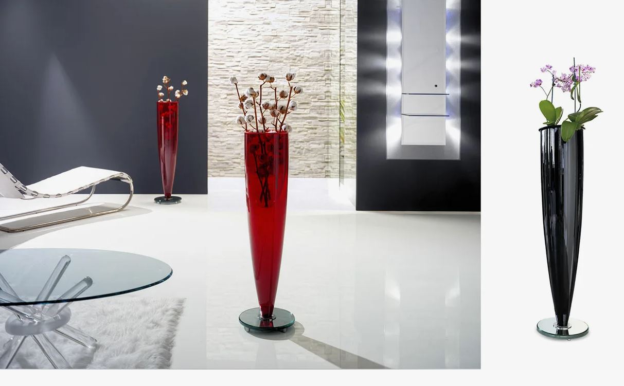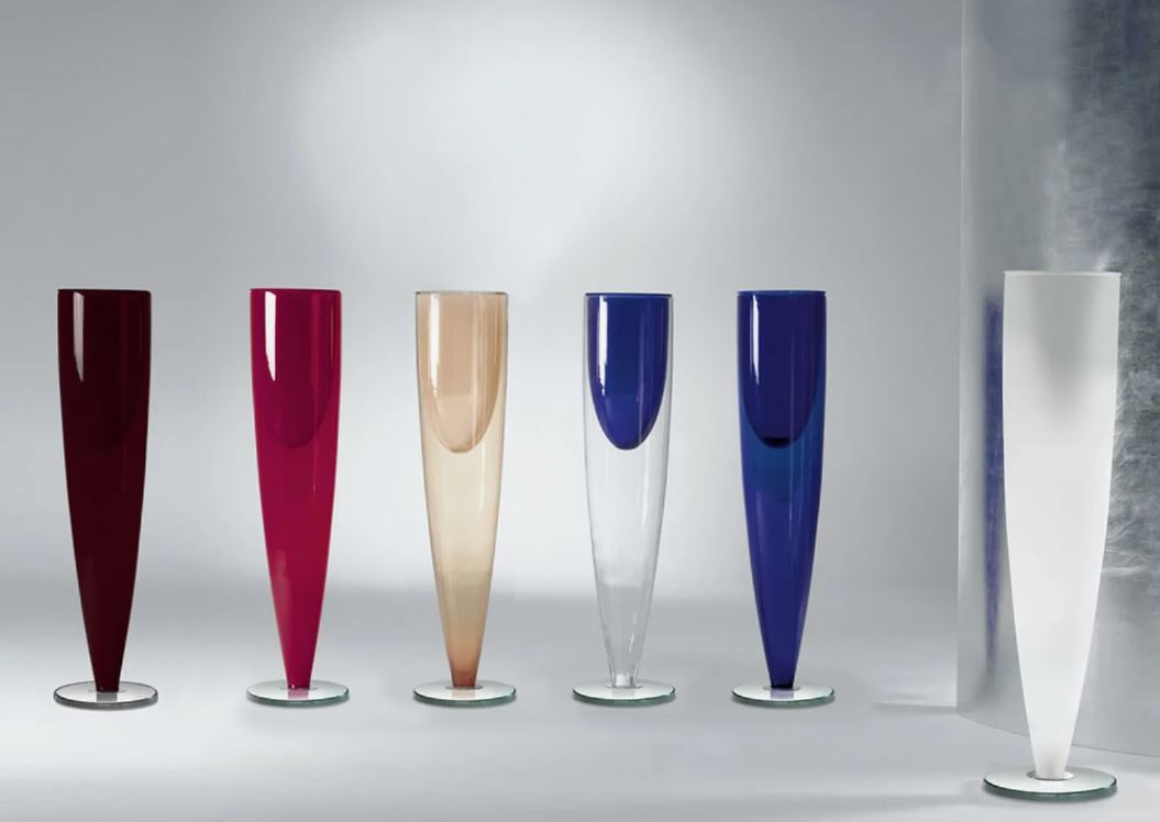 Vaso da pavimento in stile high-tech, dalla fabbrica REFLEX, collezione Disegno. La struttura è realizzata in vetro di Murano. Sono possibili diverse finiture di colore