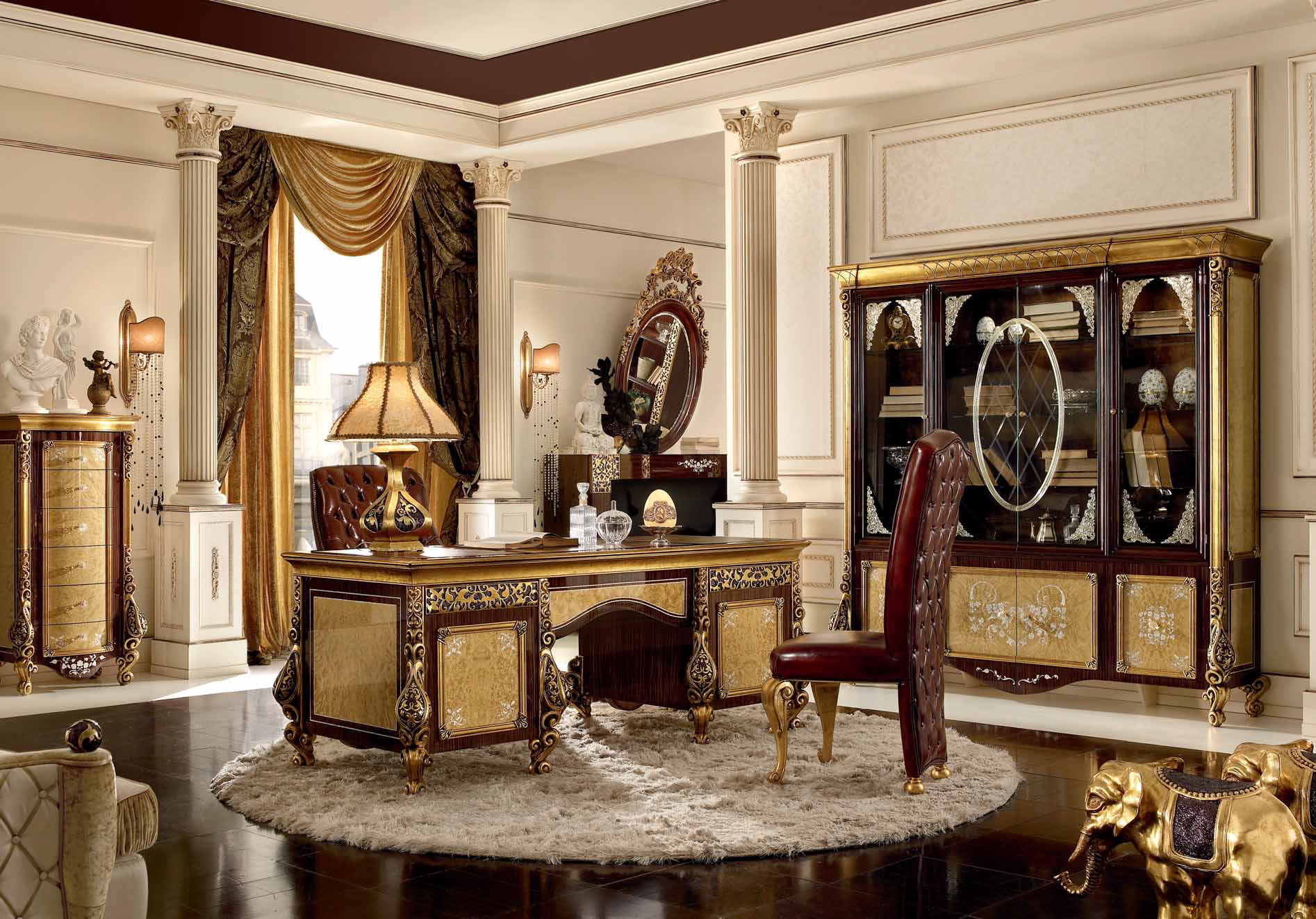 La sedia senza braccioli con sedile imbottito e schienale alto è presentata dalla fabbrica A. R. ARREDAMENTI SRL nella collezione ROYAL PALACE. La parte esterna dello schienale della sedia è rivestita in pelle e ricamata con un punto Kapton, le sue gambe curve sono decorate con sculture artistiche fatte a mano. La sedia è realizzata in legno massello, la tappezzeria è in pelle, il riempimento è in poliuretano. Sedia personalizzata con braccioli disponibile