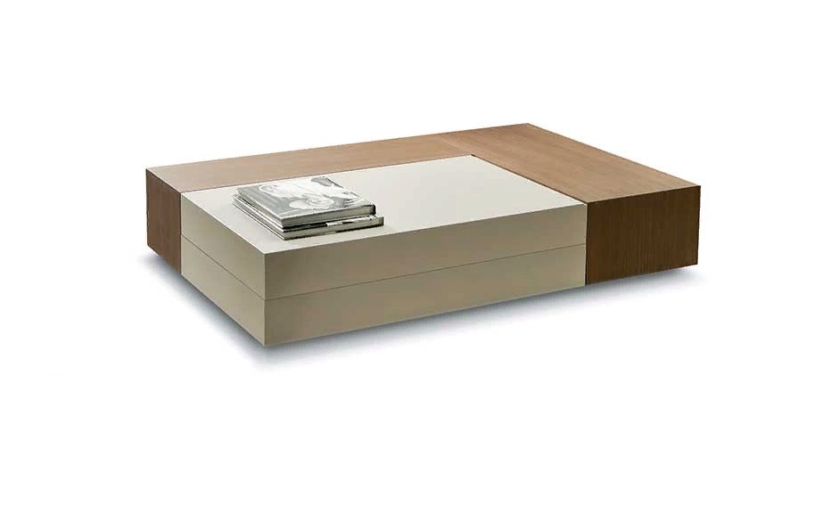 Tavolino rettangolare, tavolo a specchio scorrevole Con contenitore. Sono possibili diverse finiture.