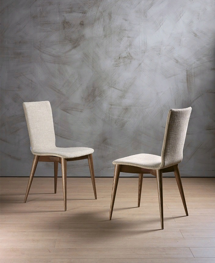 Sedia, seduta imbottita e schienale. Sono possibili altre varianti di tappezzeria e finiture.