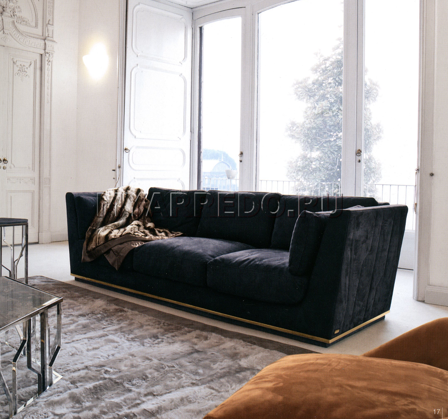 Il divano in tappezzeria nubuck è rappresentato dalla fabbrica LONGHI (F. lli LONGHI).Telaio in legno con cinghie elastiche, rivestito in poliuretano espanso ad alta densità e varie rigidità. Cuscini di seduta sono pieni di sterile d'oca, hanno un inserto in poliuretano espanso di diversa durezza, fortificata particolare imbottiture materiale «Visco Soft». I cuscini dello schienale sono pieni di piuma d'oca sterilizzata, hanno un inserto in poliuretano espanso morbido. A causa del trattamento speciale, il rivestimento del telaio sia in pelle che in tessuto è non rimovibile. Il rivestimento dei cuscini del sedile e dello schienale in tessuto è rimovibile. Il rivestimento esterno del telaio ha un firmware. La base in legno è rivestita con lo stesso materiale di cui è fatta la tappezzeria. La base è fatta di metallo oro chiaro lucido.