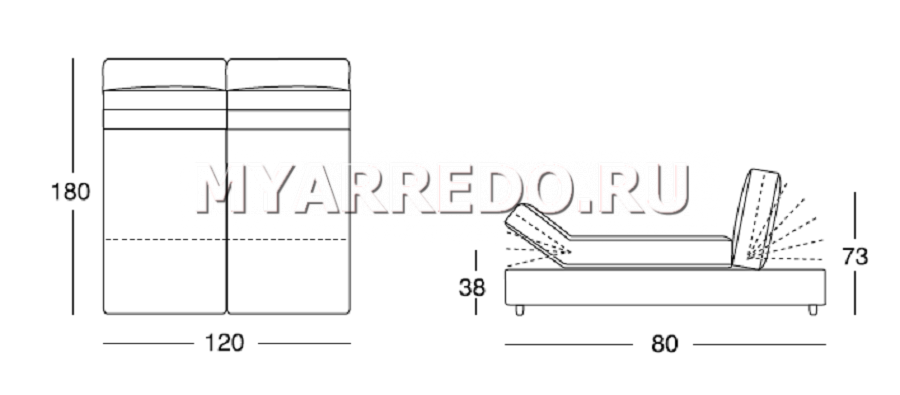 Il divano nella finitura del tessuto è rappresentato dalla fabbrica LONGHI (F. lli LONGHI). Sono possibili altre opzioni di finitura (tessuto, pelle) e dimensioni. Struttura portante in legno con meccanismo di sollevamento. Imbottitura in poliuretano espanso. Alette in alluminio cromato lucido. Imbottitura completamente removibile in tessuto.