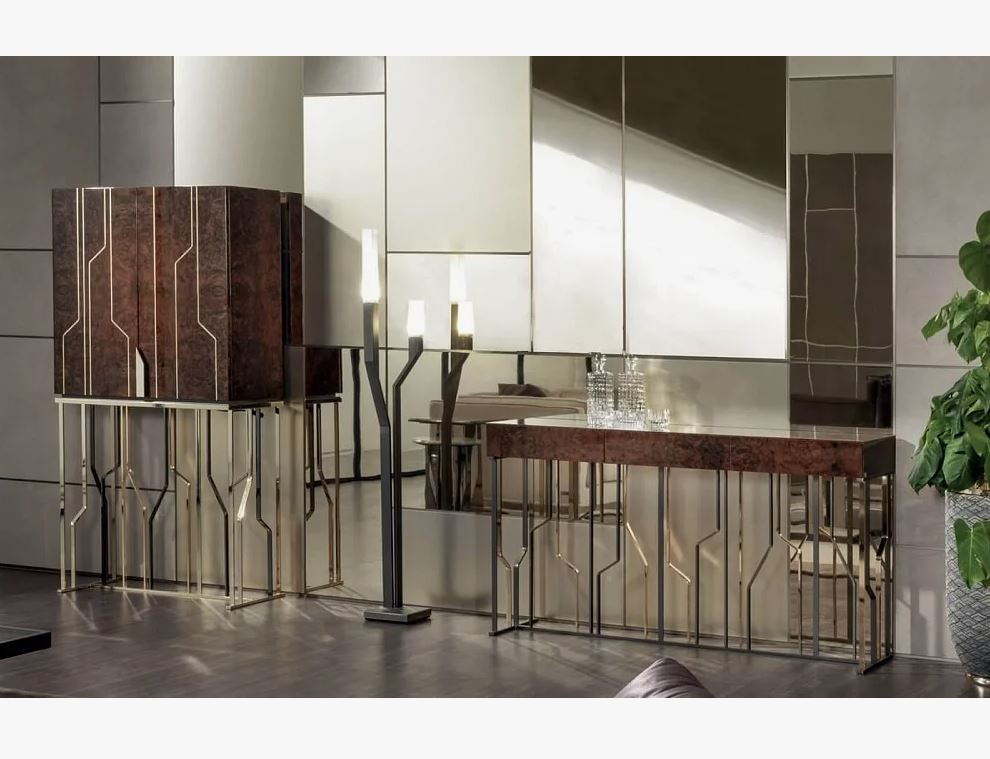 Lampada da terra in metallo spazzolato con finitura oro chiaro, presentata dalla fabbrica LONGHI (F. lli LONGHI). Paralume in plexiglass opalino. Sistema di illuminazione a LED. Sono possibili altre opzioni di finitura.