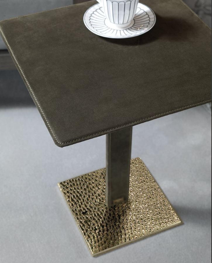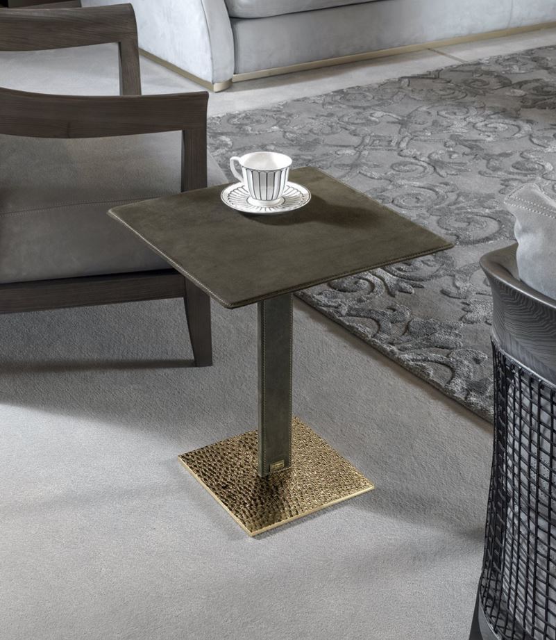 Stand con piano in onice bianco presentato dalla fabbrica LONGHI (F. lli LONGHI), con base in ottone fuso con intaglio a mano. Sono possibili altre finiture e dimensioni.