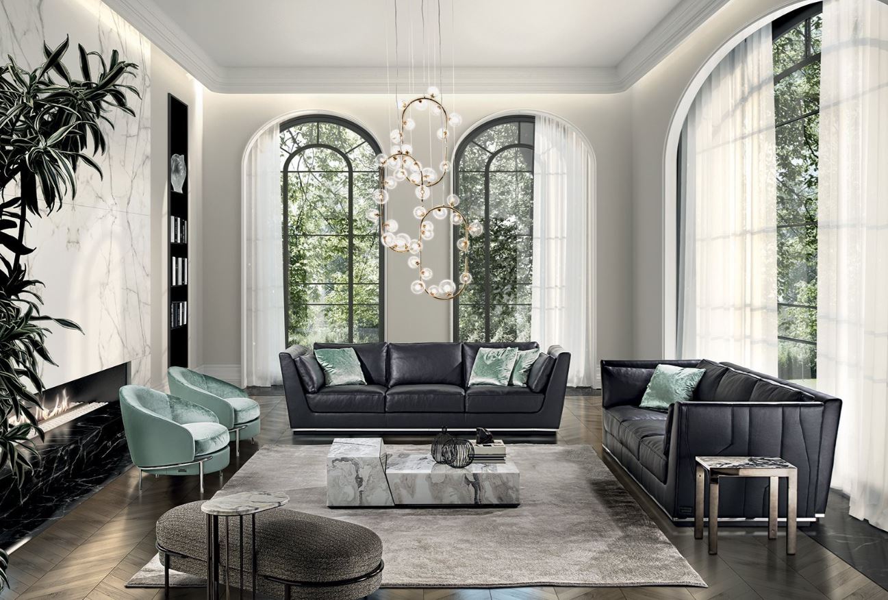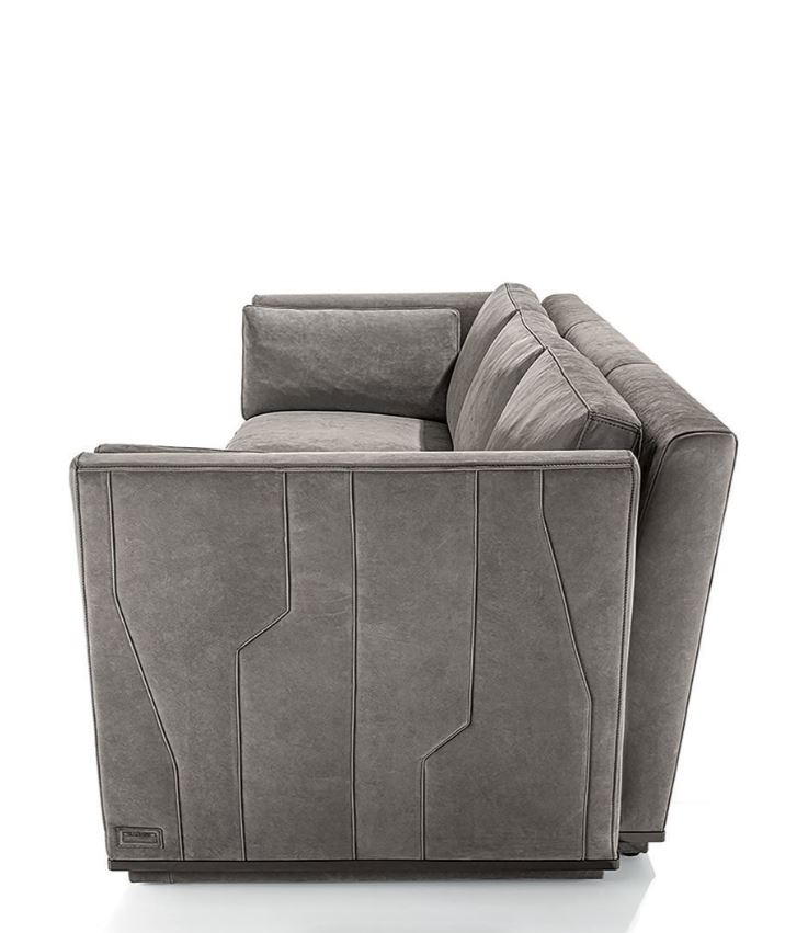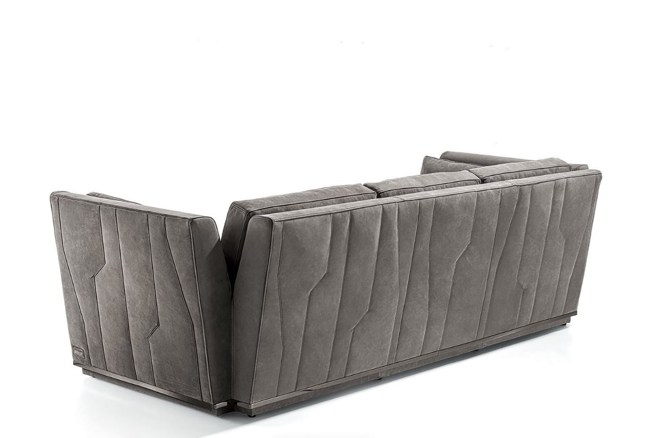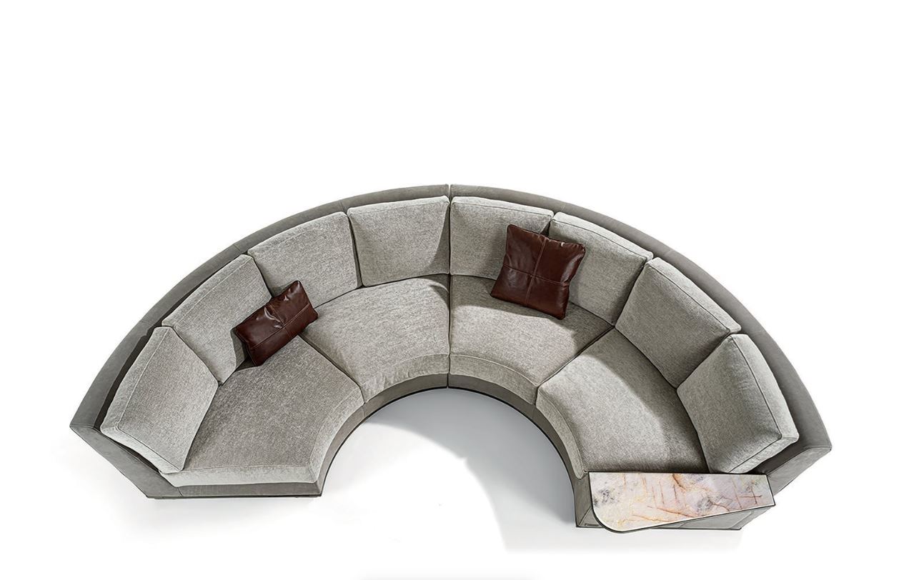 Divano modulare, angolare, in tappezzeria nubuck. Struttura in legno, imbottitura in poliuretano espanso. Nei cuscini del sedile e dello schienale c'è una piuma d'oca. Sono possibili altre opzioni di allestimento e finitura.