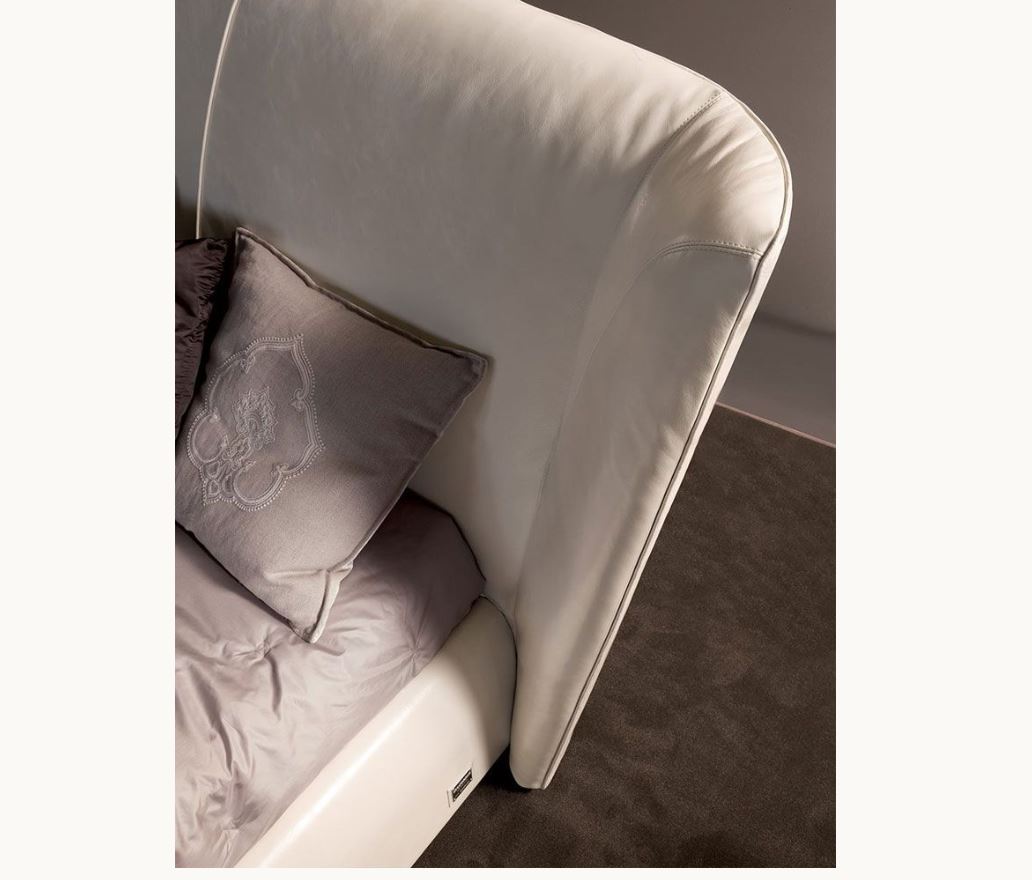 Letto con testiera in faggio multistrato in pelle, presentato dalla fabbrica LONGHI (F. lli LONGHI). La base del perimetro del letto è in faggio multistrato. Sono possibili altre finiture e dimensioni.