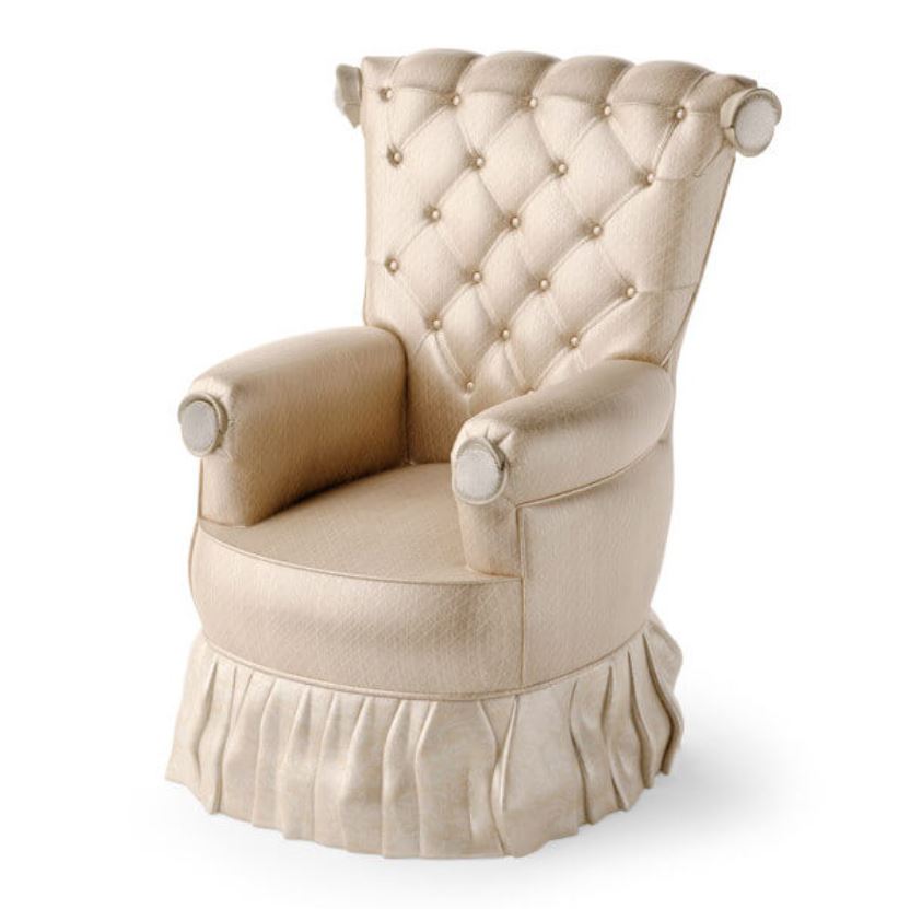 Poltrona, presentata in stile classico dalla fabbrica italiana SIGNORINI COCO & amp; amp; c, collezione Forever. Rivestito in tessuto e cucito capitone. Sono possibili altre varianti di tappezzeria.