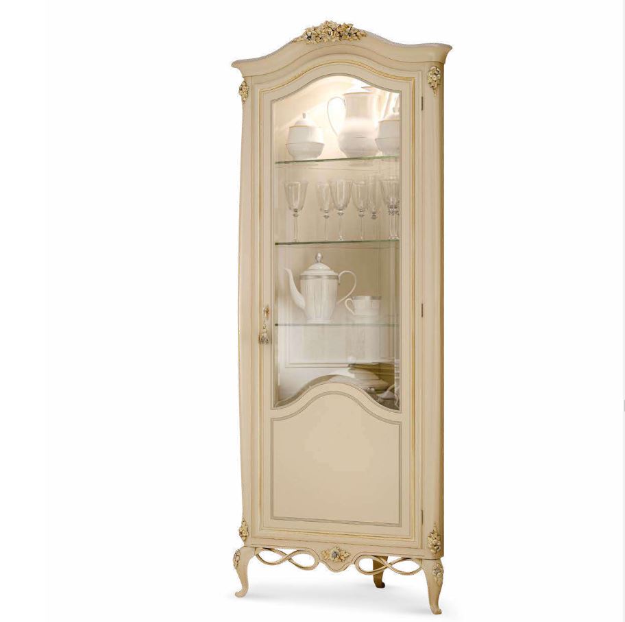 Vetrina, presentata in stile classico dalla fabbrica italiana SIGNORINI COCO & amp; amp; c, collezione Forever. Realizzato in legno massello, ripiani in vetro. Decorato con elementi intagliati. Sono possibili altre finiture.