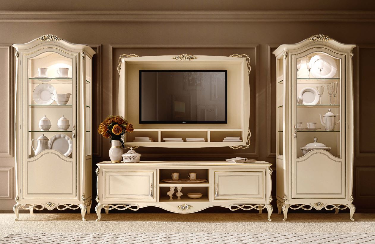 Pannello per TV, presentato in stile classico dalla fabbrica italiana SIGNORINI COCO & amp; amp; c, collezione Forever. Realizzato in legno massello, decorato con elementi intagliati.