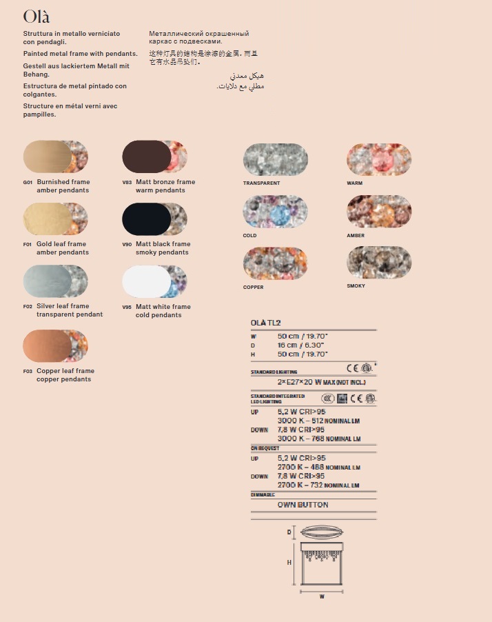| Finitura | Metallo; Vetro |
