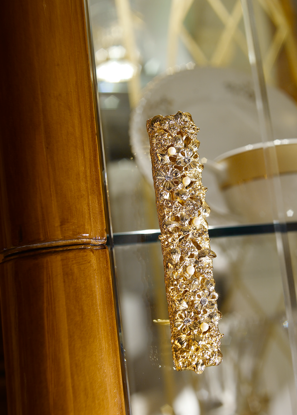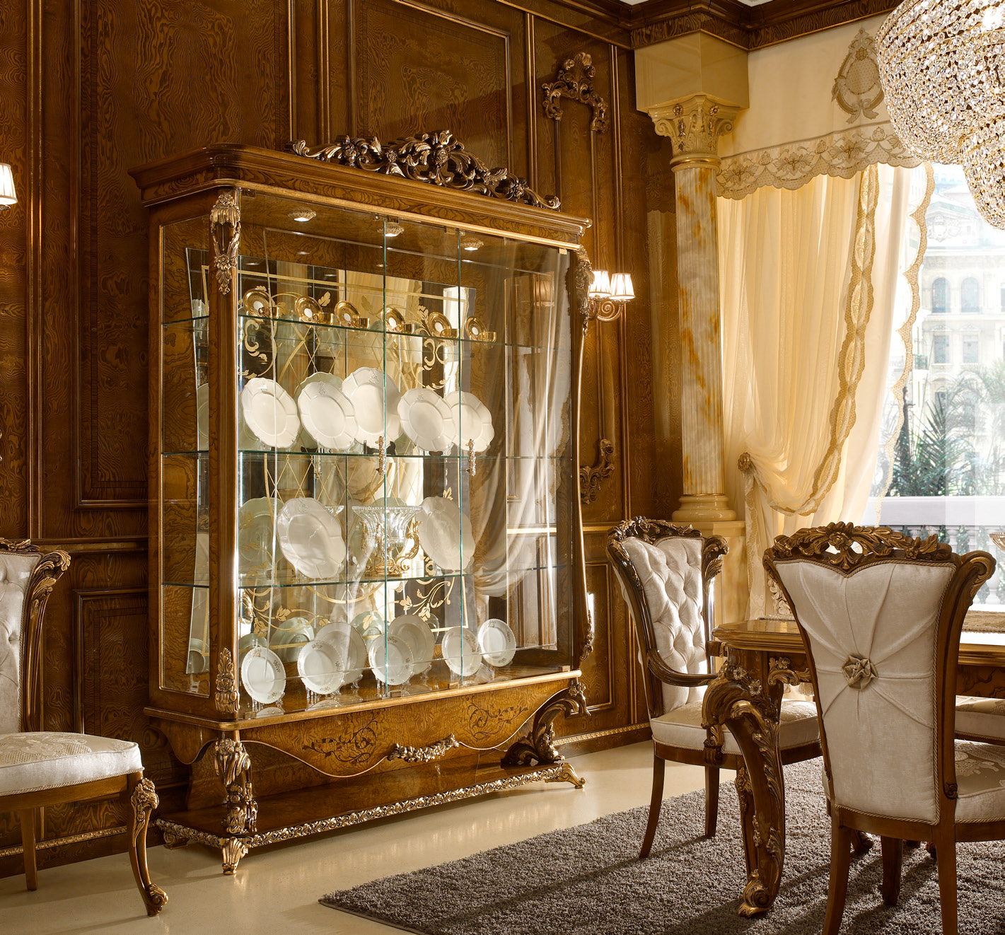 La vetrina a due porte in stile classico è presentata dalla fabbrica A. R. ARREDAMENTI SRL della collezione Dolce Vita. La vetrina è dotata di ripiani in vetro e ripiano aperto nella parte inferiore, il suo design è realizzato in legno massello naturale con aggiunta di vetro e decorato con sculture artistiche fatte a mano. È possibile ordinare un articolo con altre opzioni
