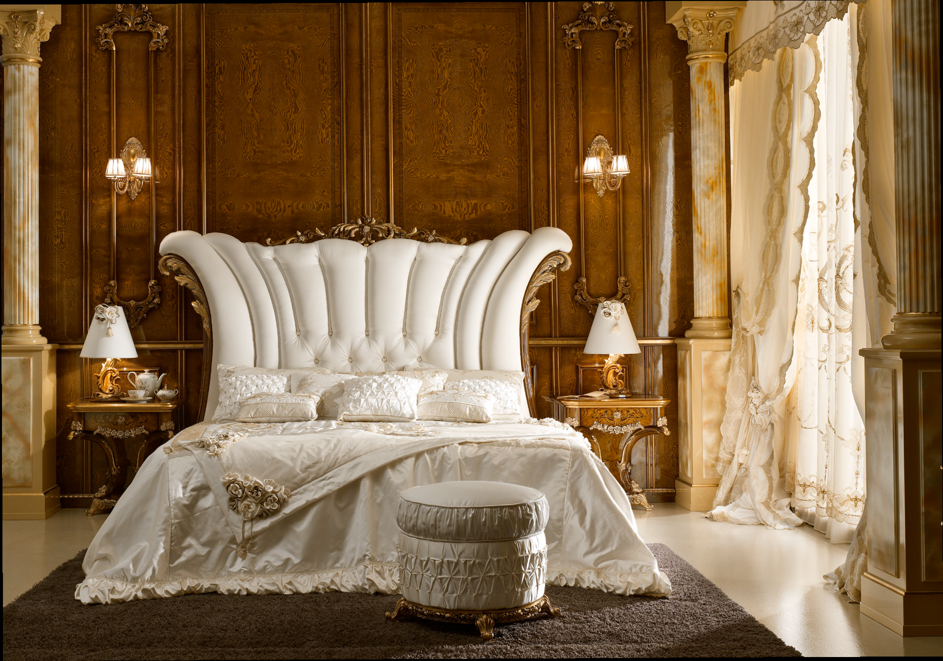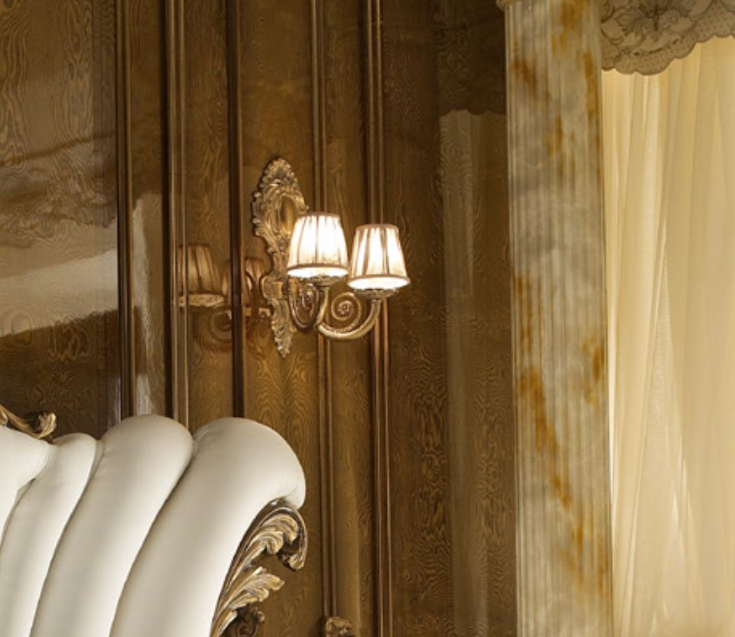 Approfitta dell'incarnazione di un classico che si riflette nel applique con due paralumi presentato dalla fabbrica italiana A. R. ARREDAMENTI SRL nella collezione DOLCE Vita. Intagliato krakas per la lampada da parete in ottone, paralumi in tessuto sono realizzati in colore bianco