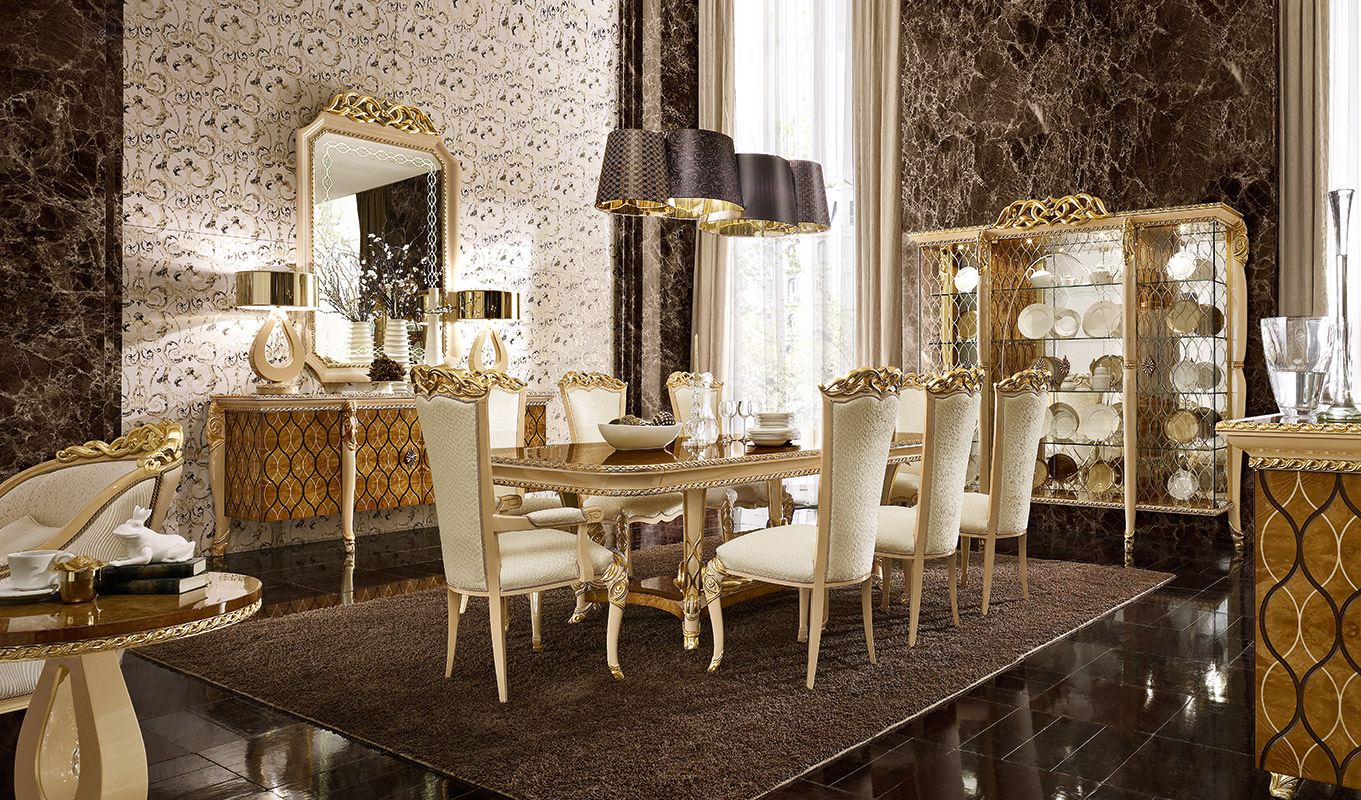 La vetrina a una porta in stile classico è presentata dalla fabbrica italiana A. R. ARREDAMENTI SRL nella collezione Harmony. La vetrina è dotata di ripiani in vetro a vista e una parete posteriore a specchio. Il design della vetrina è realizzato in legno massello naturale e decorato con sculture artistiche fatte a mano. Disponibile per ordinare i prodotti in una finitura diversa