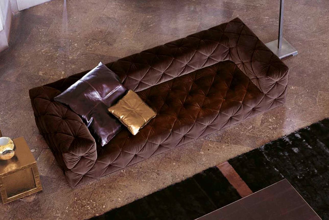 Il divano modulare è presentato in stile art deco dalla Società Italiana Longhi. Il telaio portante in legno di abete è rivestito con poliuretano espanso di altissima densità e varie rigidità. L'imbottitura in pelle è abbinata al Materiale Dacron e presenta una finitura capitonné con bottoni ricoperti di cristalli & ldquo;Swarovski & rdquo;. Il sedile del divano ha due opzioni di profondità. La serie Must è stata ampliata con nuove dimensioni e finiture. Tutti i divani e le sezioni laterali possono essere dotati sia del tradizionale bracciolo alto che della sua versione bassa su uno o entrambi i lati per creare bellissimi volumi sia nella composizione che su un divano fisso. Il nuovo elemento dell'Isola, combinato con una varietà di posti a sedere, consente di creare una varietà di soluzioni per interni. Le basi possono essere verniciate a polvere in bronzo o nero o cromate con la seguente finitura: