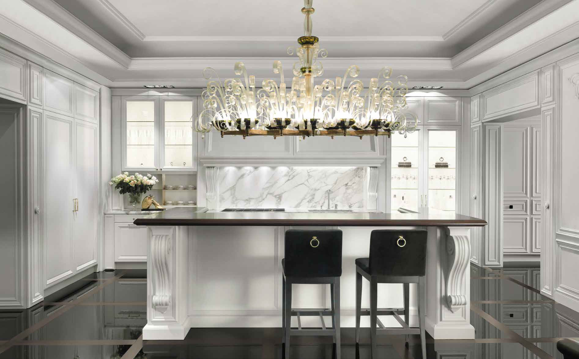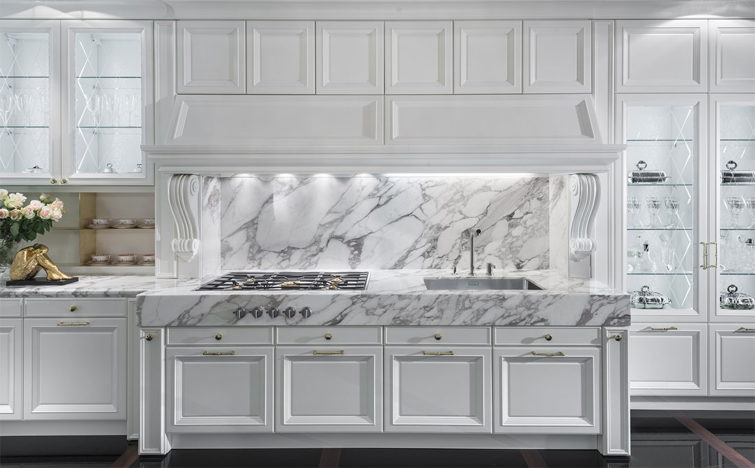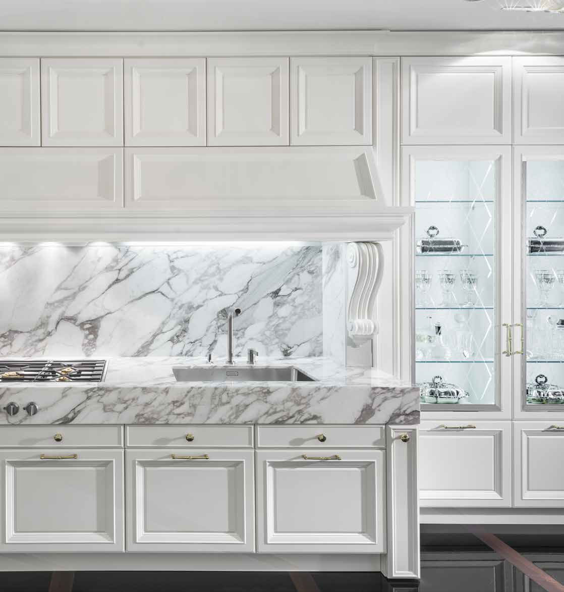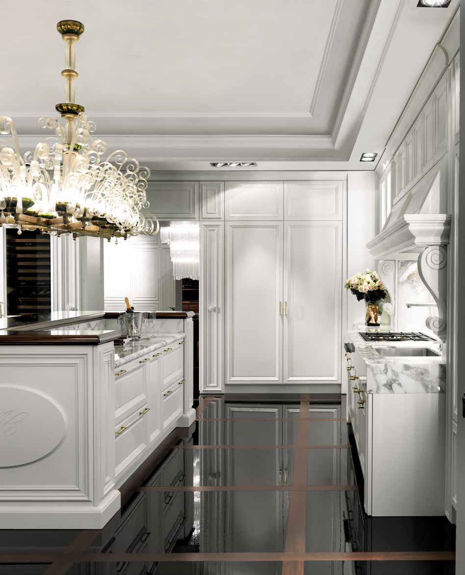 La raffinata cucina bianca come la neve è rappresentata dalla fabbrica italiana CASTAGNA CUCINE nella collezione KITCHENS. La cucina è realizzata in stile art deco e diventerà il luogo principale della vostra casa. Ogni elemento della cucina è progettato e realizzato da talentuosi artigiani italiani con materiali di alta qualità. La cucina è dotata di molti cassetti e diverse superfici di lavoro su cui è possibile inventare e realizzare le idee culinarie più audaci. Su richiesta del cliente sono possibili varie finiture, così come l'ordine della cucina con parametri diversi.