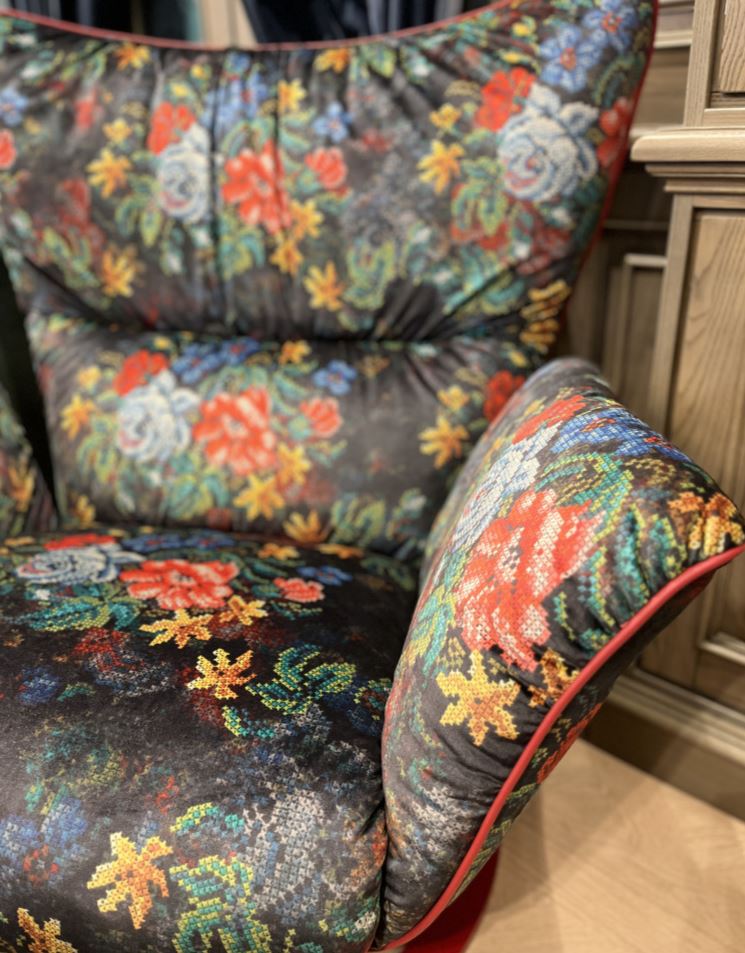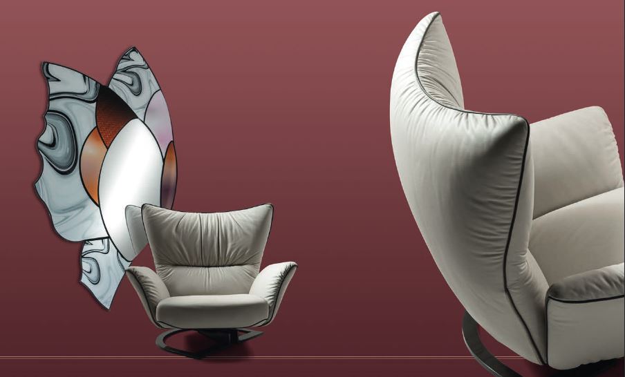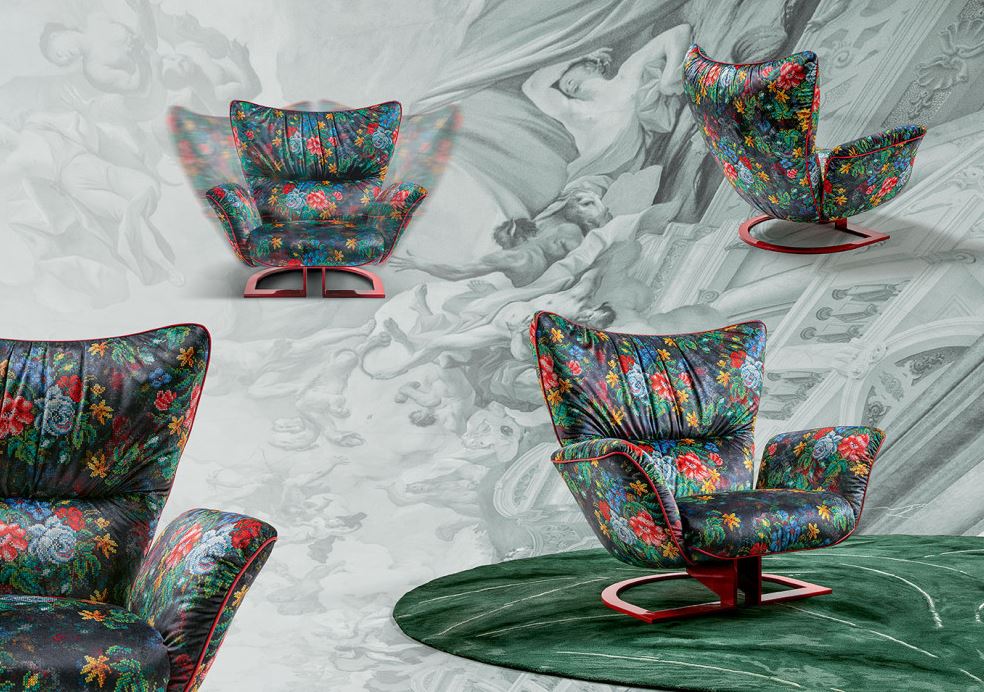 Sviluppo dello stabilimento SIGNORINI COCO. Poltrona ORCHIDEA factory collezione DAYTONA WONDERLAND La struttura è realizzata in acciaio, tirata insieme da elastici. Cuscino seduta in poliuretano espanso a doppia densità. Base girevole in acciaio fissata alla struttura portante. Le gambe sono in acciaio verniciato. Disponibili diversi tessuti secondo campionario di fabbrica.