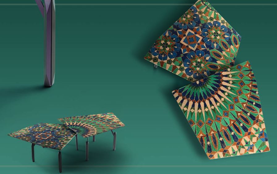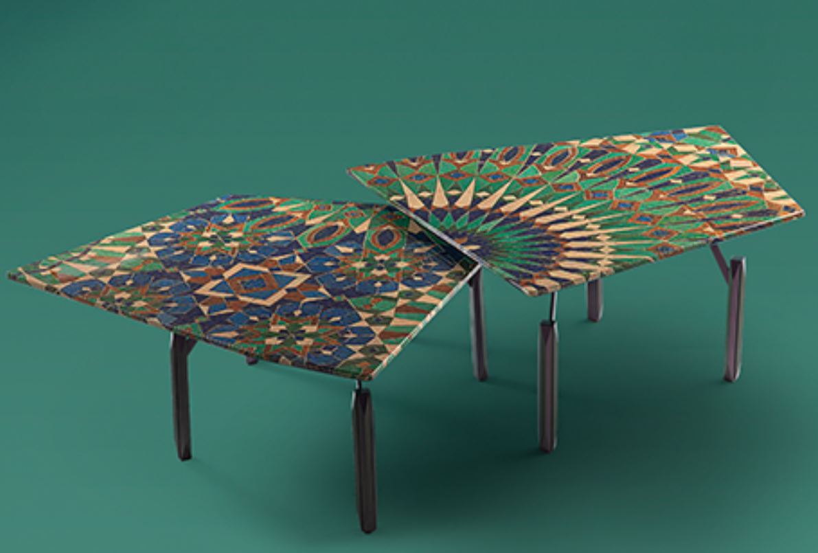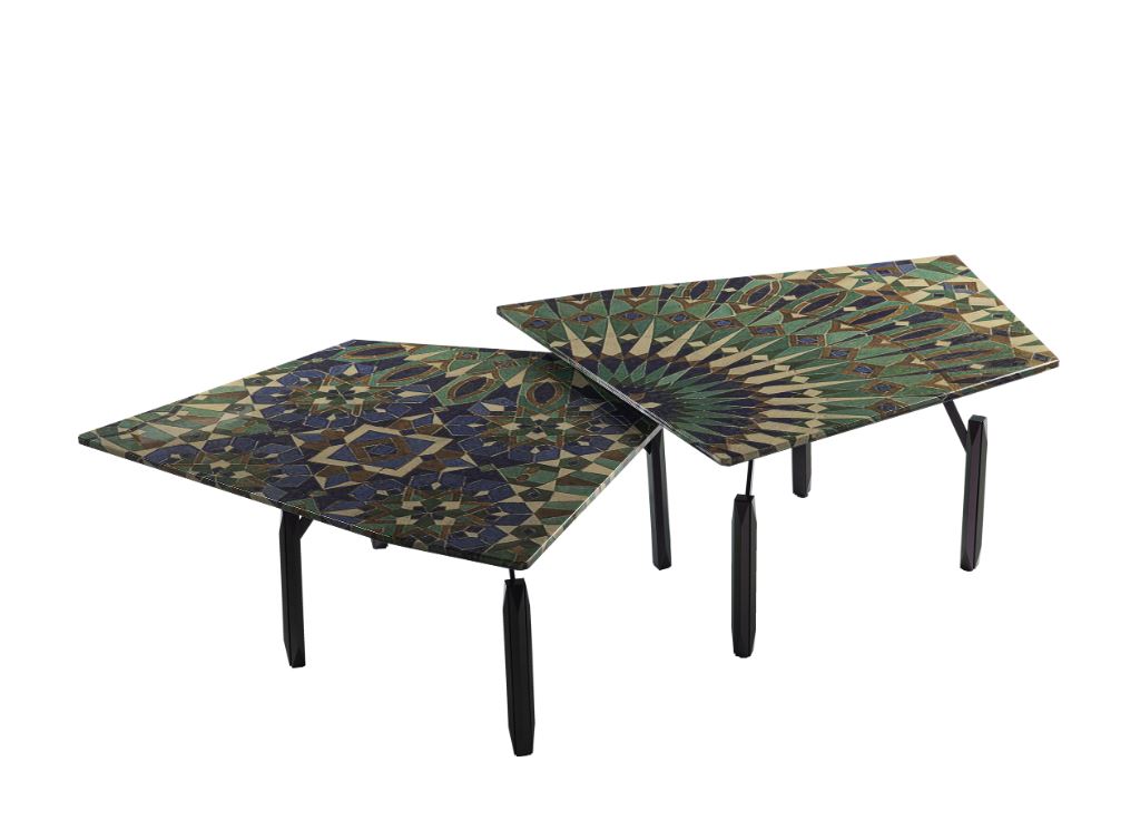 Sviluppo dello stabilimento SIGNORINI COCO. Tavolino WAVE factory collezione DAYTONA WONDERLAND. Piano in multistrato impiallacciato MDF, gambe in acciaio verniciato a polvere o verniciato verde/viola cangiante, piano laccato o fantasia.