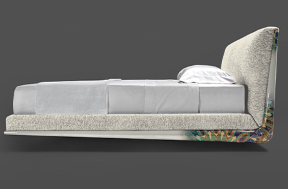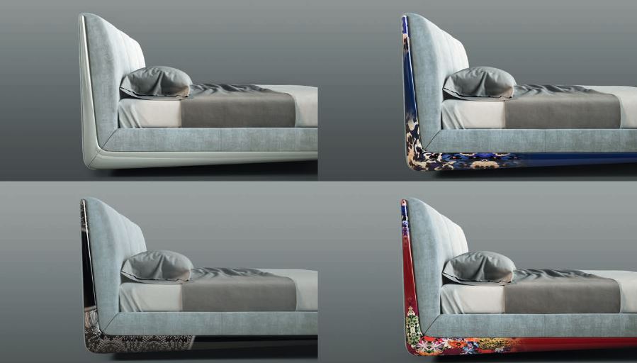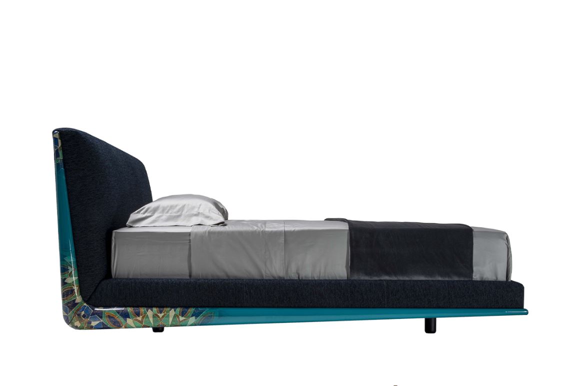 Sviluppo dello stabilimento SIGNORINI COCO. Letto BOOMERANG factory DAYTONA collezione WONDERLAND. La struttura è multistrato, con gommino di densità differenziata.Fissaggi realizzati con quadri in acciaio verniciato posti su una rete di sostegno di densità differenziata.Fissaggio quadro in acciaio verniciato costituiscono la base del materasso. Elementi in multistrato e MDF laccato lucido rosso con fregi. Gambe retrattili.