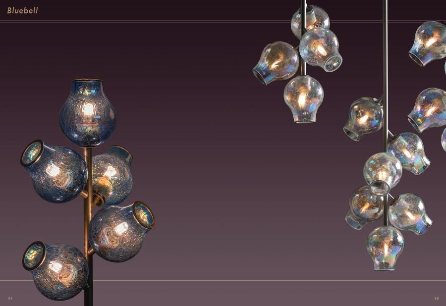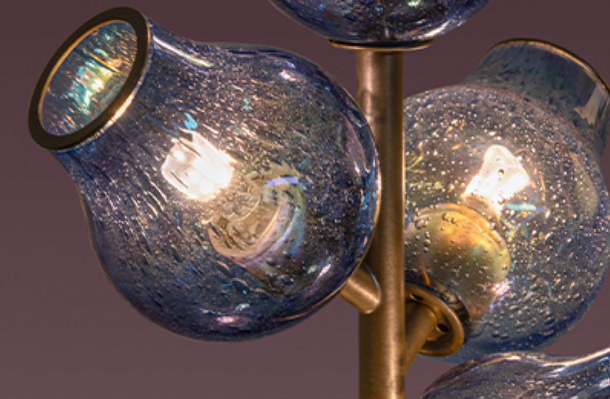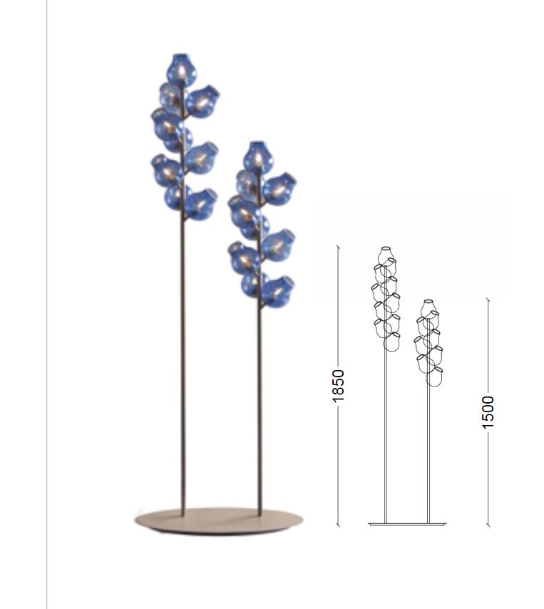 Sviluppo dello stabilimento SIGNORINI COCO. Lampada da terra BLUEBELL factory DAYTONA collezione WONDERLAND. Apparecchio con struttura in metallo, diffusore in vetro soffiato.