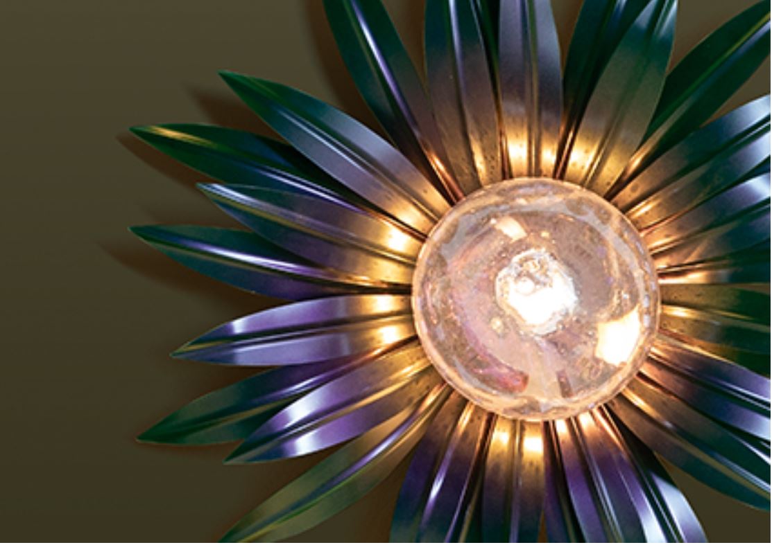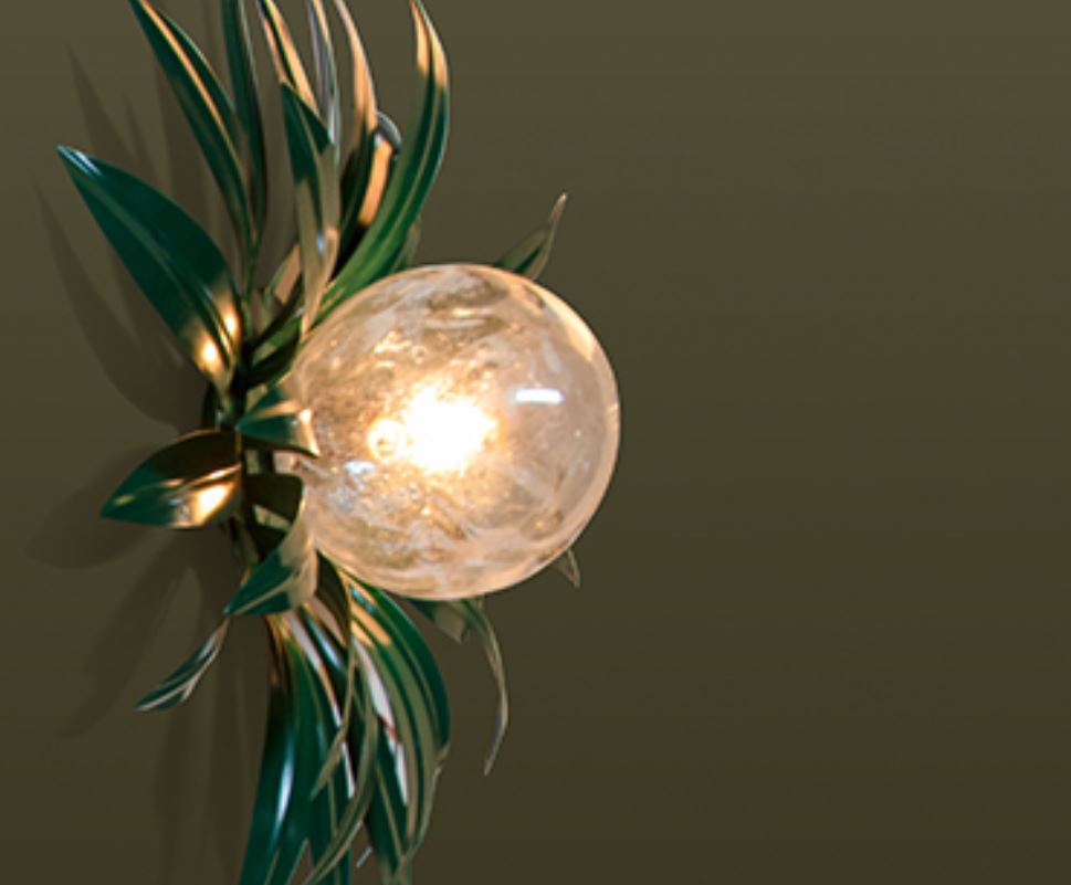Entwicklung der SIGNORINI COCO-Fabrik. Wandleuchte DAHILA Fabrik DAYTONA Kollektion WONDERLAND. Leuchte mit Metallrahmen, Schirm aus mundgeblasenem Glas.